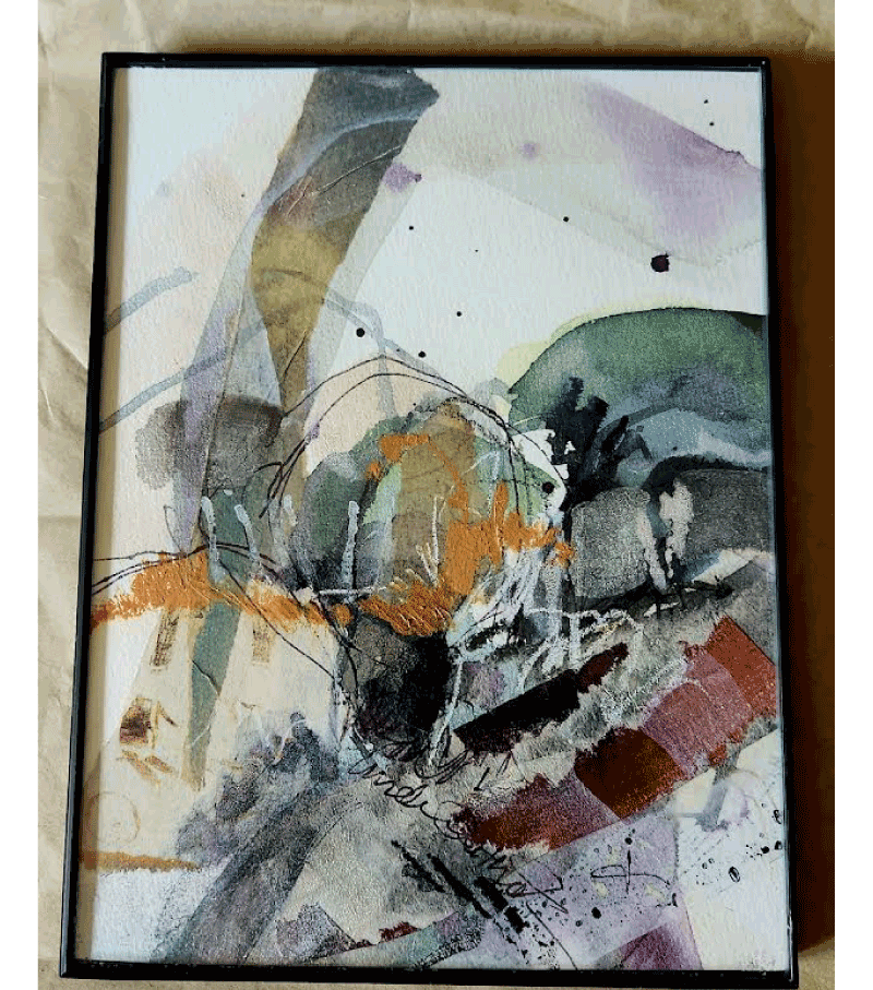 Media: Watercolor and acrylic paint, ink, charcoal, oil pastels, pencil, a variety of papers